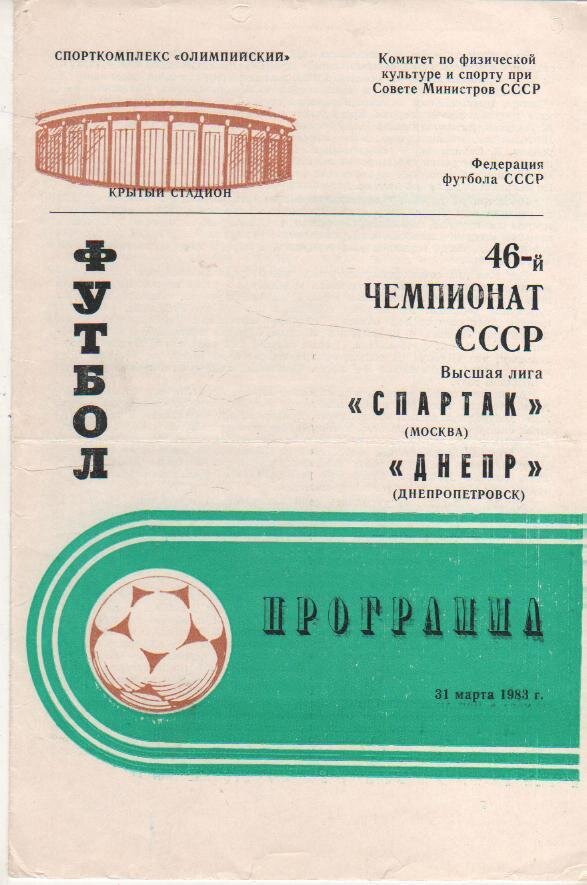 На 51-й минуте Гладилин счет сравнивает, но уже через 8 минут Таран оформляет хэт-трик! Точку в матче на 85-й минуте ставит с пенальти Александр Лысенко - 4:2 побеждает Днепр и впервые становится чемпионом СССР! А Спартак второй сезон подряд играет в матче, в котором решается судьба золотых медалей. Только если в 1982 году в противостоянии с минским Динамо красно-белые выиграть чемпионство уже не могли, а могли лишь помочь минчанам вырвать золото из рук киевского Динамо, то в 1983 году все было в руках подопечных Бескова.