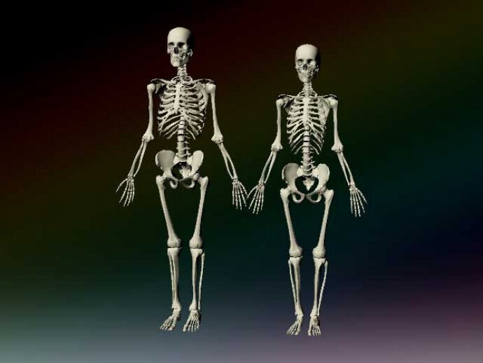 В целом, общее количество костей одинаково для обоих полов, но они имеют различия в структуре и морфологии. Эти отличия помогают реализовывать различные функции, которые являются определяющими для каждого пола. Гормональное участие в развитии костей также является различием между мужскими и женскими костями в скелете. 1. Таз Если соединить середины прямых размеров таза, включая вход и выход, то получается так называемая ось таза (axis pelvis) в виде кривой, вогнутой кпереди линии, проходящей через середину тазовой полости. Таз в своем естественном положении сильно наклонен кпереди (inclinatio pelvis), так что плоскость тазового входа, или conjugata anatomica, образует с горизонтальной плоскостью угол, который у женщин больше, чем у мужчин Тазовый вход у мужчин значительно уже, чем у женщин; у последних седалищные бугры отстоят дальше друг от друга и копчик меньше выдается вперед. Место схождения нижних ветвей лобковых костей на хорошо развитом женском тазе имеет форму дуги, arcus