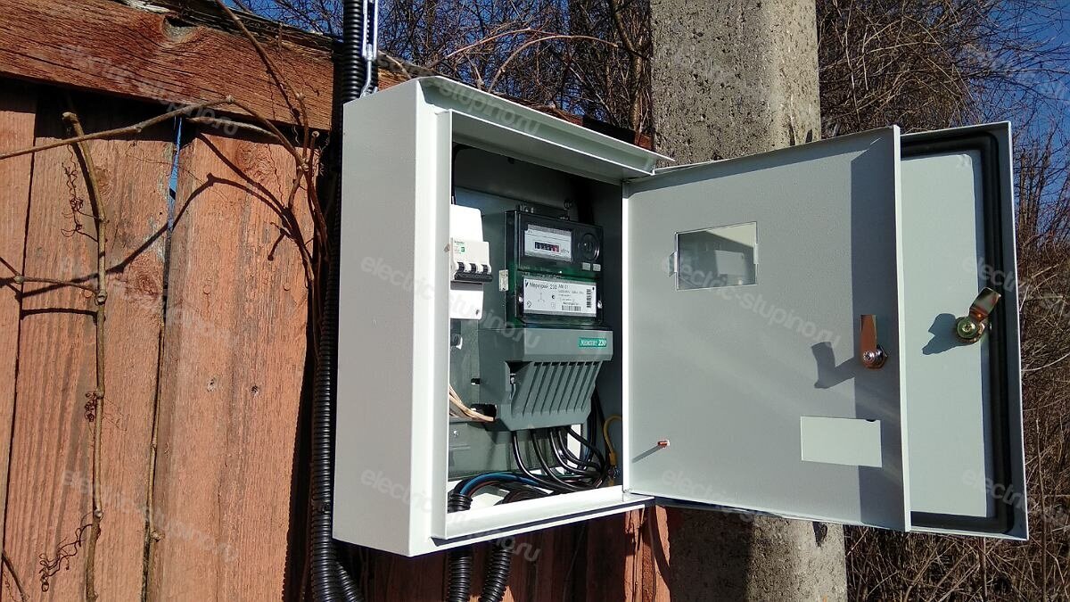 Выполнение ТУ 15 кВт в Ступинском районе в Ступинском районе д. Верзилово. Подробное описание выполненных работ по подключению частного дома к электричеству 380В 15 кВт. Выполнение ТУ 15 кВт в Ступинском районе: Подготовка Выполнение ТУ 15 кВт в Ступинском районе ПАО МОЭСК подразумевает установку электрощита с прибором учёта на границе участка. В данной работе заказчику необходимо было выполнить следующие работы, а именно: Для того, чтобы выполнить ТУ 15 кВт в Ступинском районе применяется следующие материалы, а именно: В качестве электрощита применяется щит фирмы IEK ЩУ 3/1-1 У1 IP 54. Это металлический корпус размерами 400*445*150 мм. У него 2 дверцы, одна из которых с окном. Степень защиты от влаги и пыли IP 65. Автоматика применяется фирмы Schneider Electric. В качестве вводного лучше всего использовать 3-х полюсный автомат на 25 А Easy 9. Он специально разработан для бытовых применений, а также для надёжной защиты оборудования. Для учета электроэнергии используется счетч