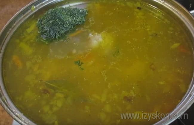 В кастрюле кипятим воду, выкладываем тефтели и картофель. Добавляем в кастрюлю оставшийся рис и перемешиваем. Оставляем на среднем огне.