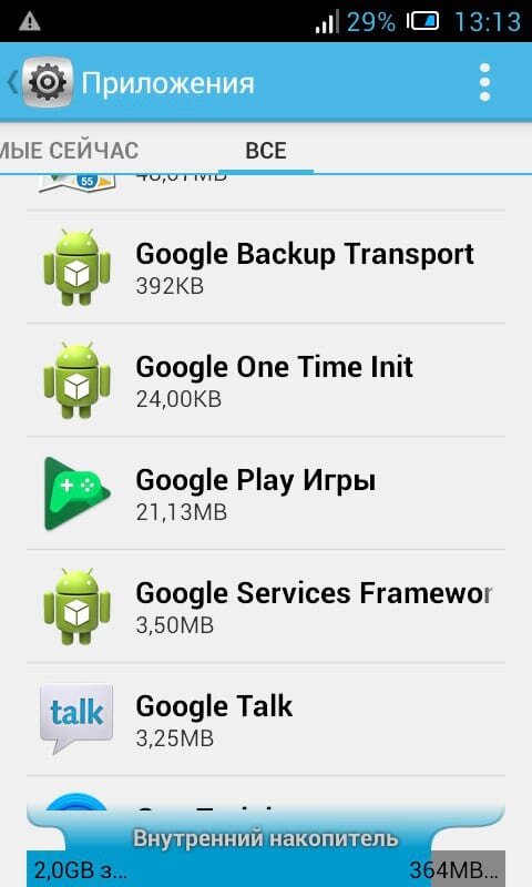 Прокрутите список к приложение, которое Вы хотите заморозить или удалить. В данном случае я хочу заморозить приложение Google Talk.