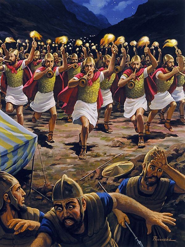 Когда израильтяне и мадианитяне расположились станами и начали готовиться к предстоящей битве, противник уже в три раза превосходил израильское войско (7:3; 8:10). Но этого Богу показалось мало.