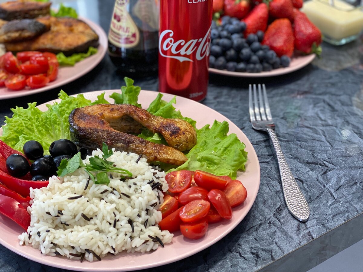 Рыба запечённая,рис басмати и конечно же овощи,