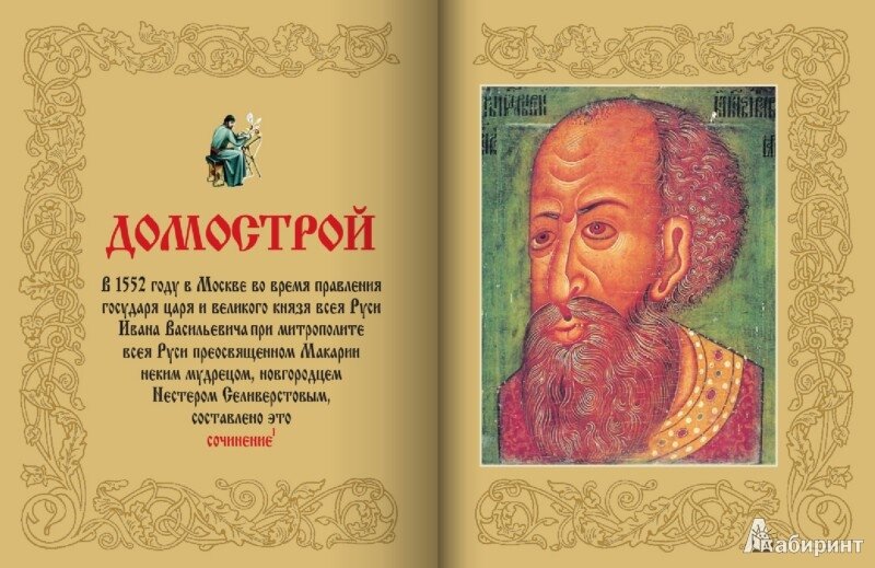 «Если с детьми не говорить о Боге, то всю оставшуюся жизнь придётся говорить с Богом о детях...» Важным свидетельством быта и воспитания средневековой Руси служит «Домострой» - книга, в которой выражен идеал средневекового воспитания и семейного быта на Руси конца XVII в. В этом сочинении отражена русская педагогическая мысль, основанная на православии. Может и сейчас есть смысл прислушаться к этим мыслям: " Поучение отца сыну Благословляю я, грешный (имярек), и поучаю, и наставляю, и вразумляю единственного сына своего (имярек) и его жену (имярек), и детей их, и домочадцев – следовать христианским законам, жить с чистой совестью и по правде, в вере соблюдая волю божью и заповеди его, а себя утверждая в страхе божьем и в праведном житии, жену наставляя и домочадцев своих не понужденьем, не битьём, не тяжкою работой, а словно детей, что всегда в покое, одеты и сыты, и в теплом дому, и всегда в порядке. Вручаю вам, по-христиански живущим, на память это писание, на вразумление вам и