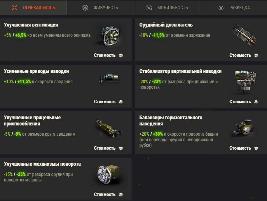 Доброго времени суток друзья! Скоро нас ждет тест нового оборудования в игре, стартует он 2 июня и продлится по 9 июня на сервере песочницы. Итак какие изменения нас ждут: Появятся 4 категории оборудования это: 1. Огневая мощь 2. Живучесть 3. Мобильность 4. Разведка Появится новая механика, которая будет распределять оборудование по слотам. На панели настройки техники появятся слоты с категорией для установки оборудования. Количество слотов и категорий будет зависеть от уровня машины: Если категория оборудования будет соответствовать категории слота, в который оно установлено, оборудование будет давать дополнительный бонус. Если категории не совпадают или слот не имеет категории, оборудование будет давать только базовое значение эффекта. Таким образом, любое оборудование, совместимое с конкретной машиной, может быть установлено в любой слот, независимо от категории. Изменится количество слотов снаряжения и оборудования у танков с 1 по 3 уровень, на 4 уровне будет доступно все 3 с