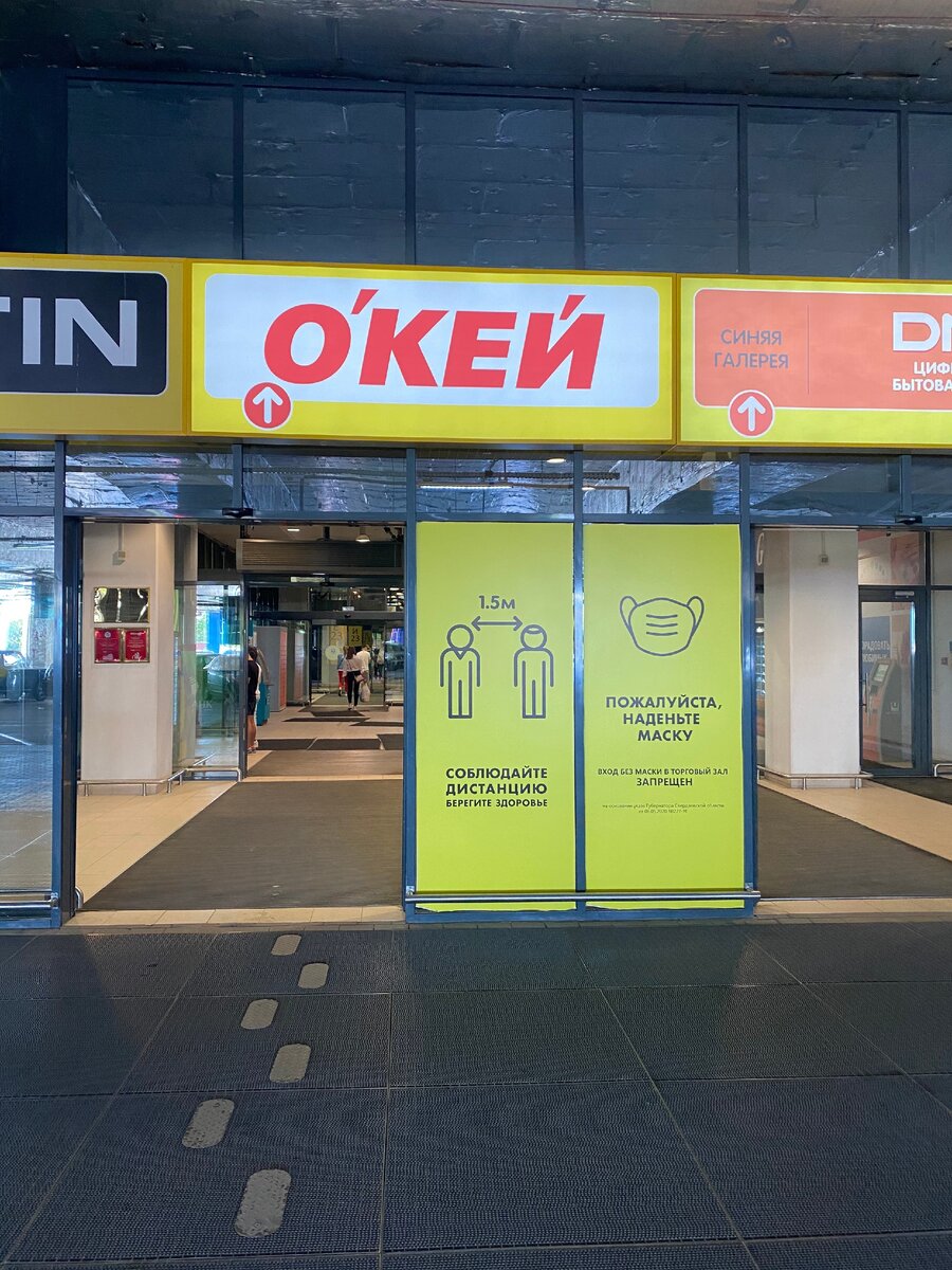 Всем доброго денечка. Как я уже писала ранее наш ТЦ был закрыт роспотребнадзором по причине... Вообщем не понятно по какой причине. Но не смотря на это доставки по городу никто не отменял. Так как почти весь товар был перевезен во второй наш магазин хочу поделиться обстановкой в другом ТЦ, так сказать на окраине города. Там руководство в отношении вопроса арендной платы оказалось более вменяемое, они с пониманием отнеслись к сильному спаду продаж и значительно снизили арендную плату. Большое им за это спасибо)) Но давайте посмотрим как там обстоят дела с мерами безопасности в условиях пандемии. Первое что мы видим подходя к ТЦ это банер с предупреждением о ношении маски и соблюдении дистанции. И это правильно. Так же на полу на территории ТЦ везде присутствует разметка, чтобы люди понимали где эти злополучные 1,5 метра. Большая часть торгового центра огорожена лентой, продуктовый работает и как следствие все магазины находящиеся в этой зоне тоже. Есть отдельный вход? Нет. Мешает ли эт