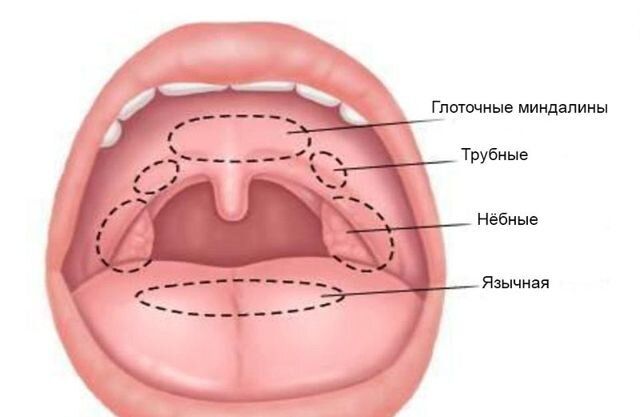 Гланды входят в так называемое лимфоэпителиальное кольцо Пирогова-Вальдейера. В состав лимфоидного кольца глотки также входят: носоглоточная миндалина (чаще вместо этого названия мы слышим слово «аденоиды»); язычная миндалина, которая находится в области корня языка; и трубные миндалины (валики), которые расположены в глуби носоглотки у входа в евстахиеву трубу (это орган, который соединяет носоглотку с ухом). Каждый из этих органов заслуживает отдельной статьи. Но сегодняшние наши герои – именно нёбные миндалины, поскольку они напрямую связаны с таким лор-заболеванием, как хронический тонзиллит.