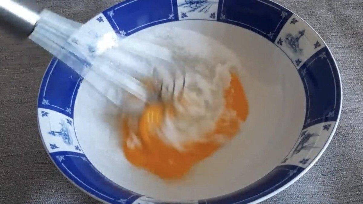 Потом добавим половина муки, перемешаем и добавим оставшееся муку и снова перемешаем, чуть чуть разрыхлителя.