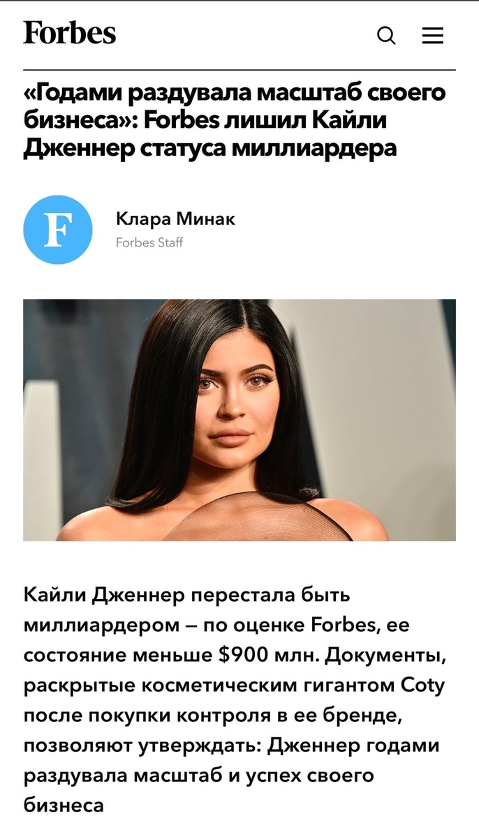 Это означает, что Дженнер годами «раздувала масштаб и успех своего бизнеса». «Бизнес Кайли значительно меньше и менее выгоден, чем ее семья годами убеждала косметическую индустрию и СМИ», — пишет Forbes USA.