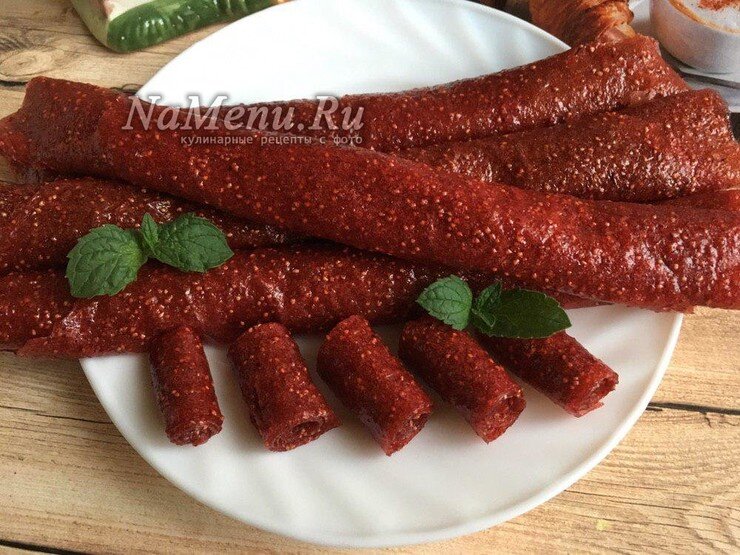 Ингредиенты: ✔️Сахар класть по своему усмотрению (его можно заменить медом) 💦Ягоды очищаем от плодоножек, промываем и смешиваем с сахаром 🍓Клубнику перетираем в однородное пюре при помощи блендера ➡️Берем силиконовый коврик. Выкладываем его на сковородку или противень. В первый заход смазываем их поверхность несколькими каплями растительного масла (в последующих разах в этом нет необходимости). Кладем на бумагу несколько ложек пюре и разравниваем. Толщина пюре не более 3,5 см. 🔥Сушим пастилу в духовке на самой минимальной температуре, приоткрыв дверцу. Она должна сушиться, а не выпекаться 🥄Готовую пастилу заворачиваем в рулет. Чтобы не слиплись, можно их обсыпать сахарной пудрой https://namenu.ru/11385/Pastila_iz_klubniki_v_domashnih_usloviyah/