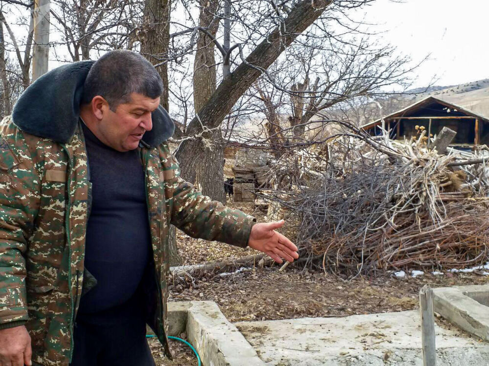Фермер Нвер Хлоян из села Памбак получает газ из установок в собственном дворе. Проект должен был обогреть все село, но доводить до конца его не стали.