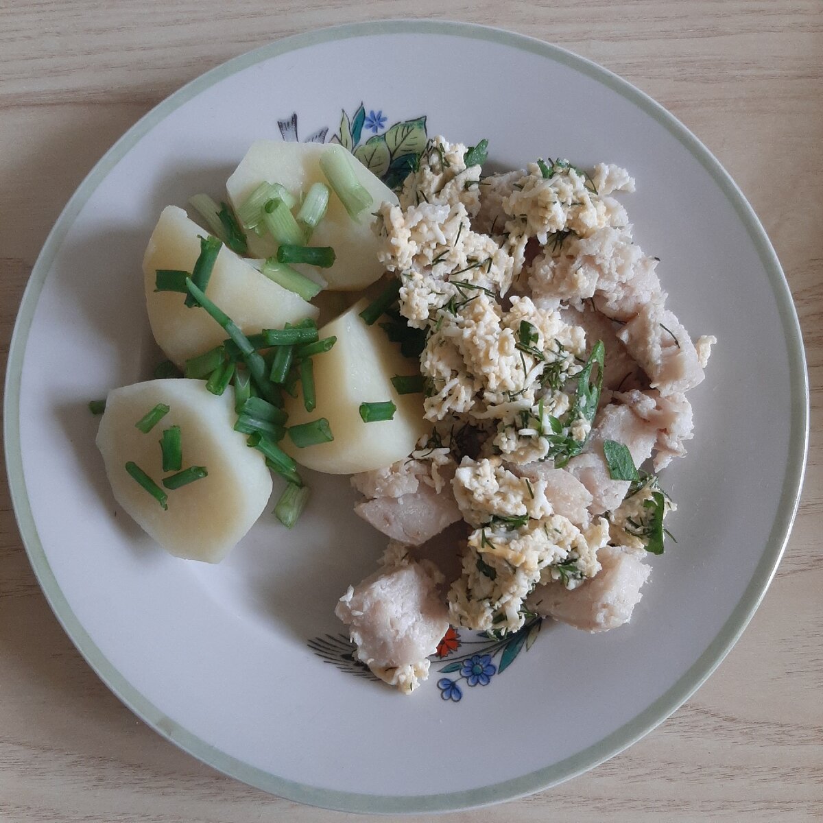Специалисты по питанию рекомендуют есть рыбу 2-3 раза в неделю, потому что в ней множество полезных микроэлементов: витамины А, D, Е, фосфор, сера, ванадий йод. В рыбе много белка, омега-3 и др. Рыбу, особенно жирную, рекомендуют давать детям, чтобы избежать рахита и хрупкости костей. В общем, рыба - это классно, круто и полезно. Порадуйте на ужин своих домашних вкусной рыбкой. Готовится рыба по-польски очень быстро, буквально за 15-20 минут. А с отварной картошечкой... мммм... просто огонь! Самое главное, что рыба получается совсем не жирной, а соус очень нежным, поэтому таким блюдом можно наслаждаться хоть каждый день. Нам потребуется: 🔹 филе белой рыбы, 🔹 яйца, 🔹 сливочное масло, 🔹 зелень, 🔹 лавровый лист, соль, перец по вкусу Рыбу нарезаем кубиками 2-3 сантиметра. И тушим в небольшом количестве горячей воды с солью, перцем и лавровым листом. Яйца отвариваем, натираем на мелкой терке. Растапливаем кусочек сливочного масла, вливаем его в яйца. Туда же добавляем несколько лож