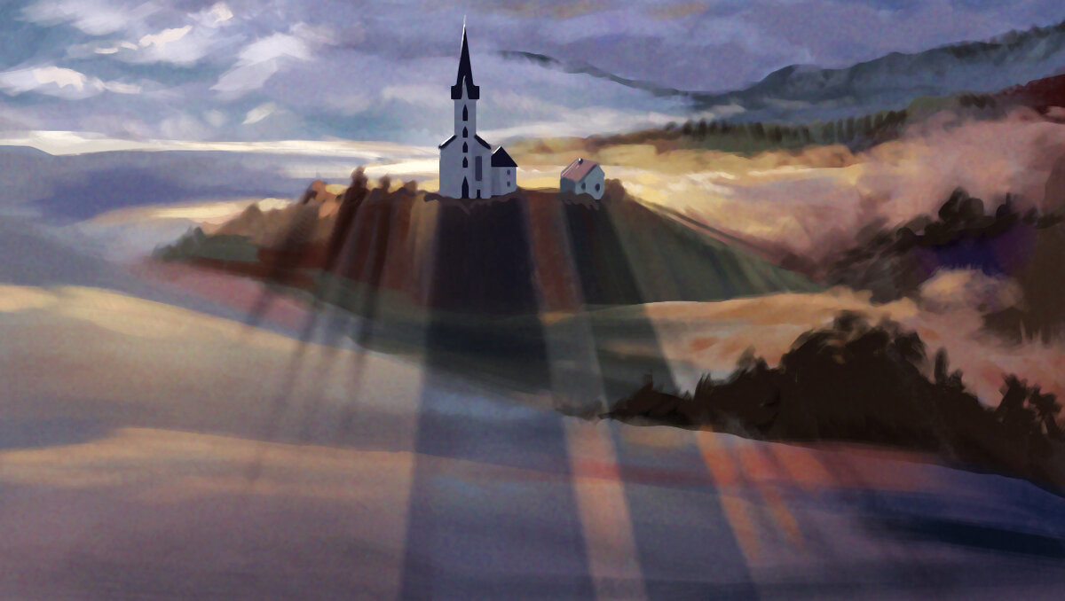 Просторный холл пронизывали косые солнечные лучи. Они падали из высоких узких окон и разбивались о выложенный узорной плиткой пол. Тускло белела массивная лепнина. У стены аляповато раскрашенная Мистралина стояла рука об руку с Александром в жирно вызолоченном доспехе. Лазурные глазки божеств недовольно таращились на ярко горящий камин – жертвенники у их ног едва тлели.