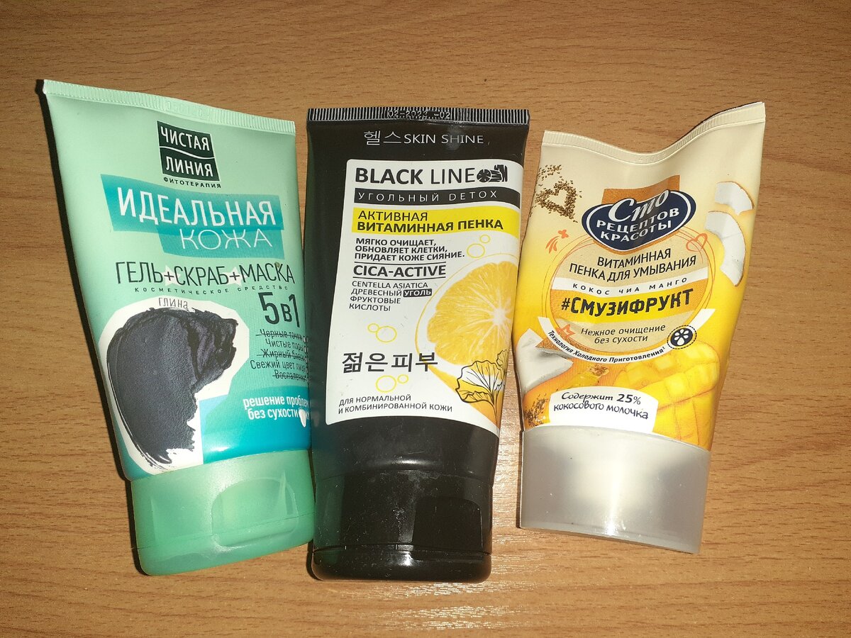 Всем привет!!! И добро пожаловать на мой канал. Хочу оставить свой отзыв о средствах ухода. Начать я хочу со средств для умывания утром я использовала витаминную пенку для умывания от Ста рецептов красоты. Трудно это средство назвать пенкой скорее это крем для умывания. Аромат был очень приятный фруктовый, по консистенции кремовая и вообще не пенилась. Было такое ощущение что умываешься жирным кремом. Косметику я непробовала ей смывать, но на утро она мне подашла идеально, кожу не сушила, а даже попитывала. После умывания небыло чувства сухости, стянутости и смывалась она с лица отлично. Вечером я умывалась активной витаминной пенкой от SKIN SHIN это средство уже идёт с фруктовыми кислотами, цвет был серый и по консистенции была похожа кислородную пузырьковую маску эта пенка нераздражала кожу лица, не сушила и очень хорошо очищала. Также чередовала я эту пенку со средством 3 в 1 от Чистой линии. Я попробовала её во всех трех направлениях и комфортно мне это средство было использовать