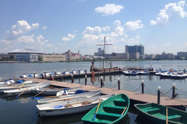 Катамараны У театра им. Г. Камала работает прокат катамаранов. В теплую погоду кататься можно до самой ночи. Эмоций от управления водным велосипедом и от открывающейся панорамы хватит надолго. Особенно красив театр на закате, а в темноте светятся фонтаны. А днем можно покормить уток и чаек, не забудьте для них хлеба. Адрес: у театра им. Г. Камала. Смотровые площадки Для любителей видов города с высоты в Казани есть три смотровые площадки: в Ривьере, в Гранд Отеле и на крыше нового ЗАГСа (Казан). Чтобы попасть на вертолетную площадку отеля придется заплатить 300 рублей за 15 минут, в Ривьере вход на смотровую площадку стоит 100 рублей, самый демократичным оказался Центр Семьи: входной билет на крышу обойдется в 50 рублей, а время пребывания не ограничено. О времени работы надо узнавать заранее, часто площадки отелей бывают закрыты, а на крышу ЗАГСа можно попасть в любой день кроме понедельника до 6 вечера. Колесо обозрения «Вокруг света» Аттракцион работает круглый год, поскольку в