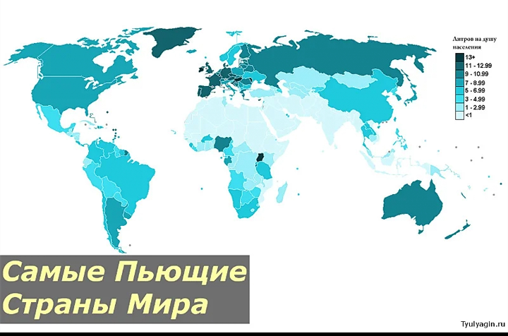 Рейтинг самых пьющих стран мира на 2020 год Здравствуйте, уважаемые читатели проекта Тюлягин! Сегодня мы с вами поговорим о немного отвлеченной теме — о рейтинге самых пьющих стран мира на 2020. Несмотря на то, что тема не связана напрямую с тематиками проекта — экономикой, финансами и современными технологиями, она все равно является важной темой для экономики, так как косвенно влияет на общий уровень жизни населения, производительность труда, уровень смертности и на ряд других социально-экономических показателей. В каких странах мира запрещен алкоголь? К сожалению, или, возможно, для некоторых к счастью, многие граждане нашей планеты любят злоупотреблять алкоголем и иногда уйти от скучной повседневности и серых будней таким способом. Причины могут быть у всех разные и сейчас я не буду их рассматривать. Однако, как и у многих других увлечения, у алкоголя есть разумная норма. Когда человек превосходит норму его увлечение превращается в пьянство и зависимость. Так вышло, что в мире
