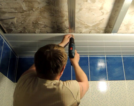 Монтируют подвесной потолок из пластиковых панелей за несколько приемов: • Готовится базовая плоскость монтажа;