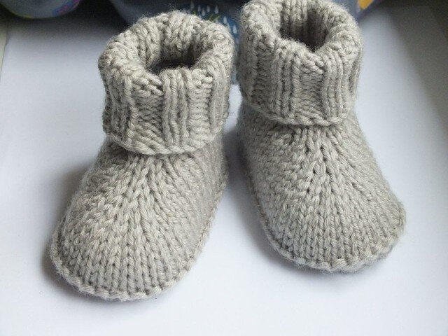 Спицами 4.0 мм. набрать 6 петель. 1-й ряд (изн. сторона): лицевые петли. 2-й ряд (лиц. сторона): 1 лиц., прибавить петлю, 4 лиц., прибавить петлю, 1 лиц. = 8 петель. 3-й ряд: лицевые петли. 4-й ряд: 1 лиц., прибавить петлю, 6 лиц., прибавить петлю, 1 лиц. = 10 петель. 5-33 ряды: вязать лицевыми петлями (платочная вязка). 34-й ряд: 1 лиц., 2 вместе лиц. вправо, 4 лиц., 2 вместе лиц. влево, 1 лиц. = 8 петель. 35-й ряд: лицевые петли. 36-й ряд: 1 лиц., 2 вместе лиц. вправо, 2 лиц., 2 вместе лиц. влево, 1 лиц. = 8 петель. 37-й ряд: лицевые петли. Подошва в длину 9 см. Поднять 40 петель равномерно вокруг подошвы: по 18 петель с каждой стороны подошвы и 4 петли вдоль наборного края = 46 петель. Далее вязать стопу по кругу, поставить маркер в начале кругового ряда. 1-й ряд: изнаночные петли. 2-6 ряды: лицевые петли. 7-й ряд: 26 лиц., поставить маркер (центр пальчиков), закончить лицевыми петлями 8-й ряд: вязать лицевыми до последних 6ти петель перед маркером, (2 вместе лиц.) – 3 раза,