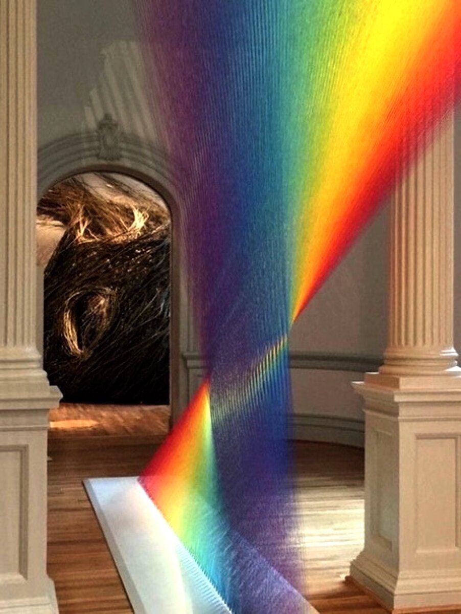 Мексиканский художник Габриэль Доу создал рукотворную радугу, использовав для этого тысячи разноцветных нитей, пишет Colossal. Экспонат представлен в одном из залов музея Toledo Museum of Art в штате Огайо и останется там до 22 января следующего года. Инсталляция, получившая название Plexus.35, представляет собой несколько тысяч нитей, натянутых между полом и стеклянным потолком музея, — попадающий на нее солнечный свет помогает усилить иллюзию реалистичности радуги.