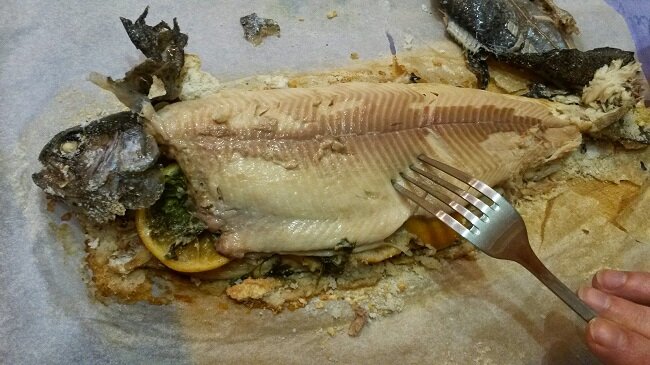 И сами рыболовы, и, особенно, их супруги, не понаслышке знают, как муторно чистить окуня от чешуи, особенно, когда его много. К счастью, есть интересный рецепт приготовления окуня, по которому рыбы чистить не нужно. Уверен, что этот рецепт понравится многим, т.к. он избавляет кулинаров от столь неприятного занятия такого как, чистка рыбы. Ингредиенты В наборе продуктов нет ничего лишнего и дорогого. Окуней наловили сами, соль есть в любом доме. Ну по желанию можно черный перчик молотый и лимон. Как готовить Итак, перво-наперво нужно разогреть духовой шкаф. Пока он дойдет до нужной температуры, мы успеем выпотрошить и промыть окуней. Времени хватит, ведь чистить рыбу не требуется. Все подготовленные к приготовлению окуньки должны полностью умещаться на противне в один слой. На чистый противень нужно высыпать ½ килограммового пакета соли и распределить ее по всей его поверхности. Внутрь каждого окунька нужно положить по дольке лимона и выложить всех рыбок на соль. Поверх окуней высыпать