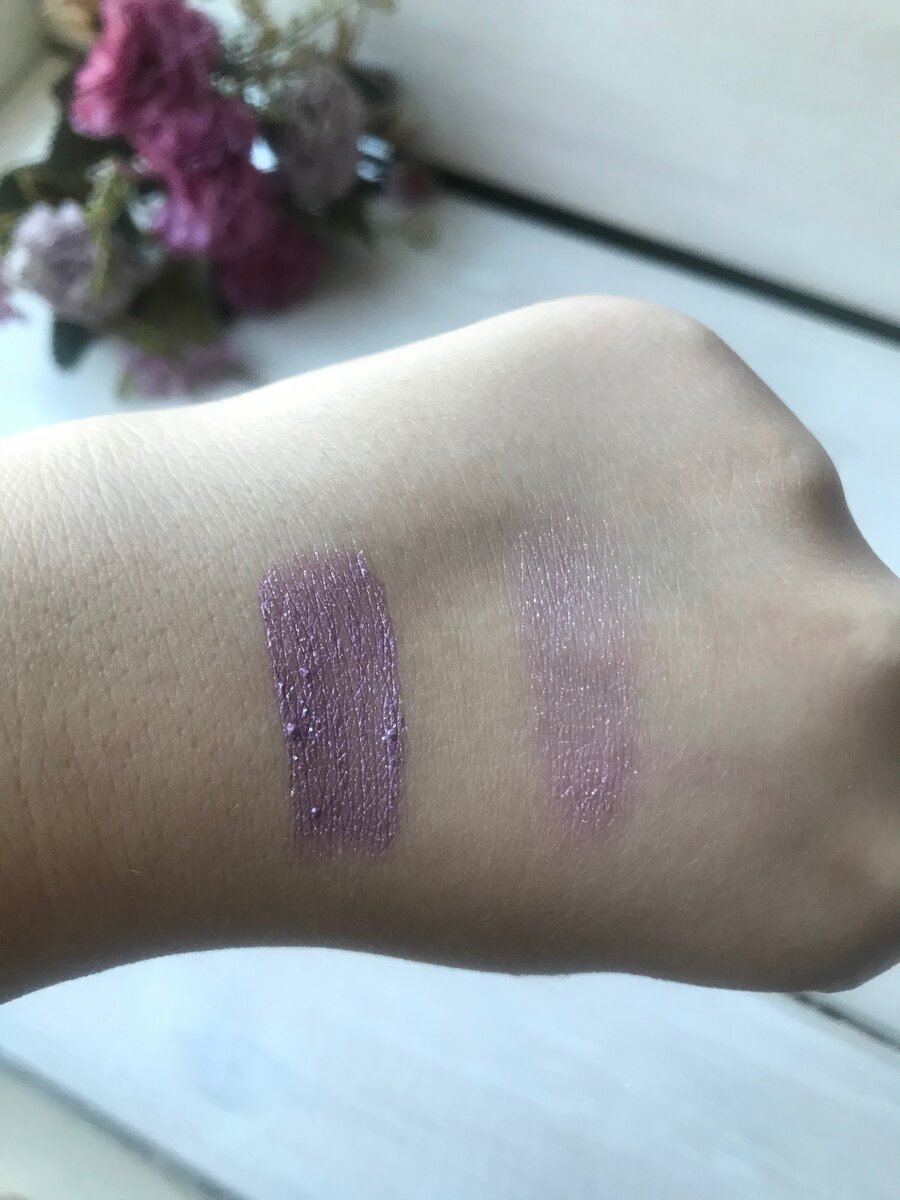 Короче, очередное разочарование. Это не кремовые тени, как заявляет производитель. Но обо всем по порядку. Кремовые тени Metallic Cream Eyeshadow от Bronx (ок. 480 рублей в Л’Этуаль) привлекли меня, естественно, своим прекрасным сиреневым цветом. Я же фанат 😅 Но с самого первого использования я разочаровалась. Сначала кажется, что все хорошо. Но вот в момент тушевки ты понимаешь, что что-то не так. Они растворяются. Точнее их цветовая подложка. Все превращается в блёстки на бледно-сиреневом полупрозрачном фоне. Если на руке это выглядит нормально, то на глазах это выглядит так, будто я в 5 лет пальцем намазюкала себе детские тени на глаза 😂 Короче, опытным путём я выяснила, что это именно топпер, и наносить их нужно непосредственно на подложку из теней. В целом, по стойкости они хороши, не плывут, не осыпаются в течение дня, в складки не собираются. Блестки не жёсткие и не крупные, поэтому не отваливаются, видимо. Другие оттенки из линейки не куплю, да и эту штуку не взяла