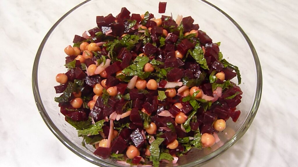 масло растительное — 1-2 ст. л. Нут для салата варится от полутора до двух часов. Предварительное он вымачивается в воде от 4 до 9 часов. . Нут и свеклу можно приготовить накануне. Для салата они должны быть остывшими. Свёклу я чищу и режу на кубики. Чеснок мелко рублю ножом. Можно также пропустить через пресс. И как же летом без зелени? Конечно, добавляю и её. Пока на грядках еще не выросла культурная зелень, я использую дикоросы. Мне нравится сныть. В комментариях меня спрашивали: Какая она на вкус? Но вкус иногда бывает сложно описать. У сныти он достаточно нейтральный, не сильно выраженный, как у некоторых других трав. Но пользы в сныти много и практически нет противопоказаний. Траву я мою, обсушиваю полотенцем и мелко режу. Соединяю ингредиенты в с