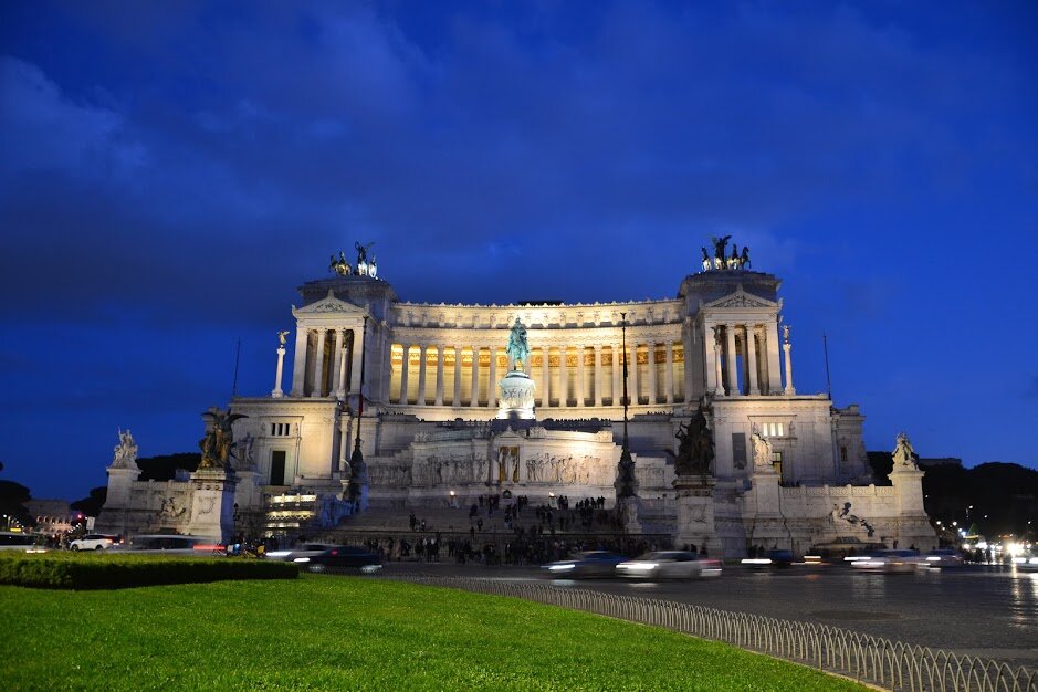 Занятный монумент-здание в честь в первого короля объединённой Италии Виктора Эммануила II. Конная статуя в наличии.