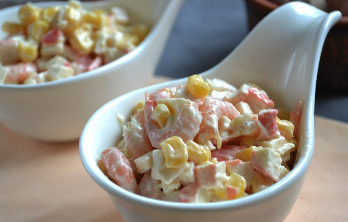 Ингредиенты:Креветки — 250 грКрабовые палочки — 150 грКукуруза консервированная — 150 грМайонез — 80 гр