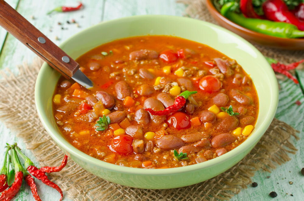 Идеально подходит для любителей постного мяса и мировой кухни! Попробуйте мексиканский суп с индейкой, бобами и кинзой – простой, сытный и с характером! Ингредиенты Суп Можно подать к супу ШАГ 1: ЖАРИМ МЯСО Фарш обжариваем в кастрюле на разогретом масле. Когда он хорошо пожарится, добавляем нарезанный кубиками лук и мелко нарезанный чеснок, приправляем перцем, добавляем мелко нарезанный перец чили, перемешиваем и пережариваем. ШАГ 2: МЫ ДОБАВЛЯЕМ ПОМИДОРЫ И БУЛЬОН К мясу с овощами добавляем помидоры пелати, все тщательно перемешиваем, доводим до кипения, затем заливаем бульоном, снова кипятим и варим около 10 минут. ШАГ 3: ДОБАВЛЯЕМ ОСТАВШИЕСЯ ОВОЩИ В кипящий суп добавляем слабообжаренную кукурузу, нарезанный кубиками перец и красную фасоль, опять доводим до кипения ШАГ 4: ПРИПРАВИТЬ И ПОДАВАТЬ СУП Добавляем в суп две щепотки перца и сок лайма, добавляем мелко нарезанную кинзу, перемешиваем, 4 минуты и можем снимать кастрюлю с плиты. Подаем с суп с дольками лайма и листьями кинзы. Прия