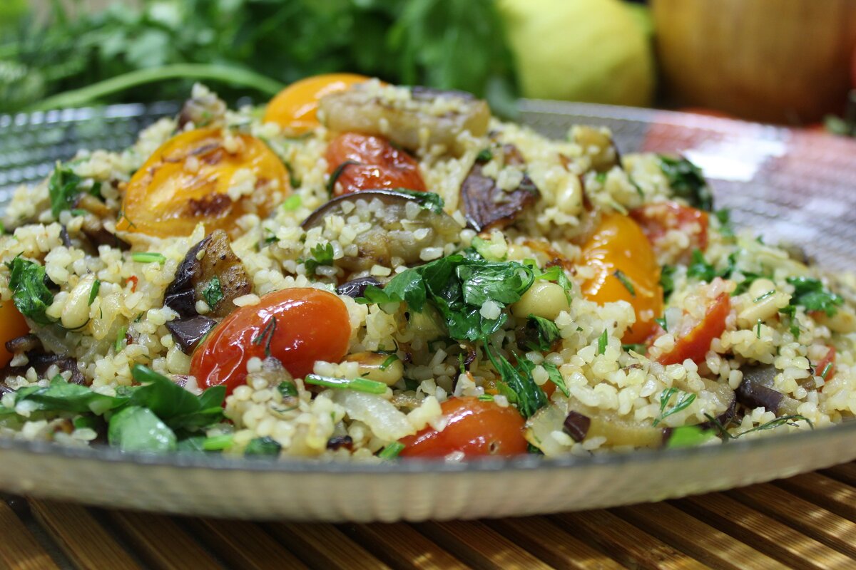 В наших краях и правда булгур очень популярен. Именно из него готовится и самый знаменитый ближневосточный салат "Табуле" и еще несчетное количество других салатов и закусок. Эта крупа, помимо своей полезности, еще отличается и очень приятной зернистой текстурой и своей способностью с легкостью и удовольствием впитывать и принимать на себя (точнее в себя) вкус своих партнеров по блюду. Именно этим свойством мы и воспользуемся, подобрав сезонные, красивые, яркие и вкусные овощные попутчики для сегодняшней королевы нашего салата. Для булгура. Угощайтесь! Уверена такой салат не оставит Ваш равнодушным. Рекомендуем посмотреть: