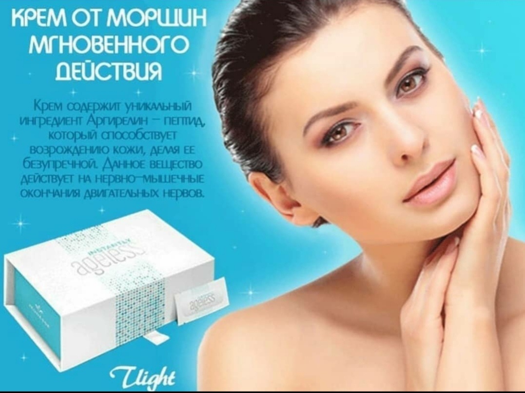 Хотите мгновенно избавиться от дефектов кожи, от гусиных лапок вокруг глаз, от мешков под глазами, от отечности и морщин? Думаю все хотят! Хочу представить Вашему вниманию крем Instantly Аgeless от Jeunesse, который быстро и эффективно сокращает видимые признаки увядания кожи. Его революционным ингредиентом является аргирелин, это уникальный пептид, который является безопасной альтернативой ботулотоксина А. Instantly Аgeless очень быстро оживляет кожу, имея эффект лифтинга. ПРЕИМУЩЕСТВА: -Заметно уменьшает мелкие и мимические морщины