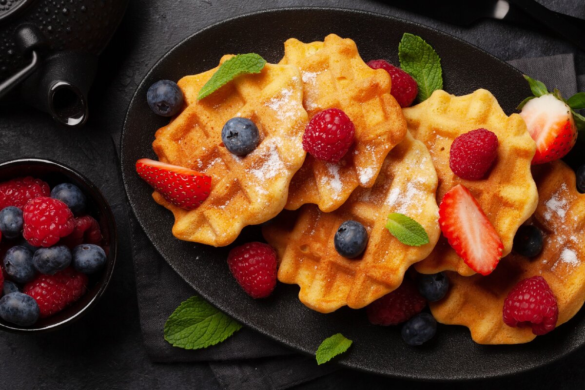 Когда вафельница нагреется выкладывайте тесто примерно по 2 столовых ложки на каждую пластину.