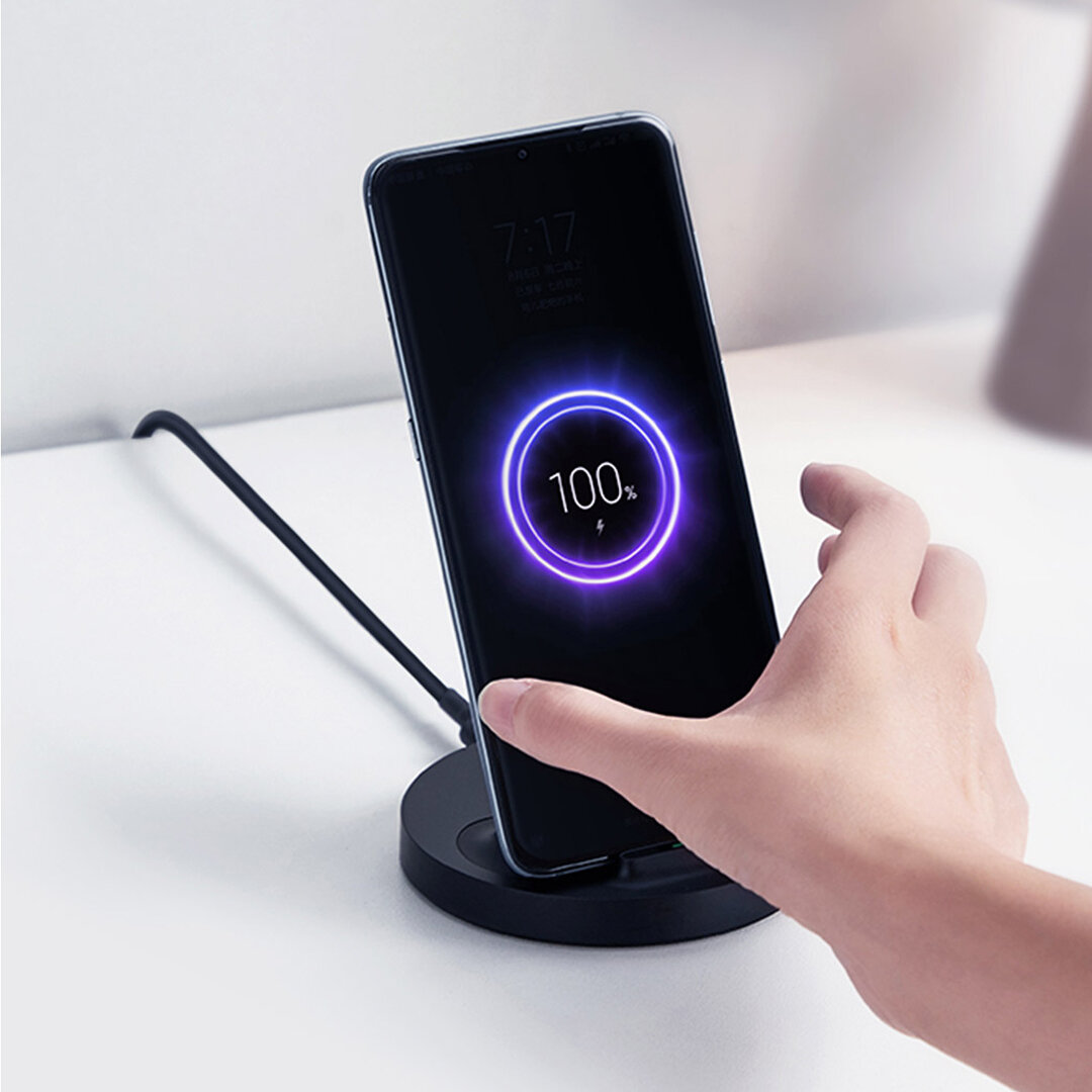 Обратите внимание, что вертикальное беспроводное зарядное устройство Xiaomi не имеет встроенного зарядного штекера, для его использования требуется зарядный штекер с минимальным 5V/2A. Согласно описанию: адаптер 5V/2A поддерживает беспроводную зарядку 5 Вт; адаптер QC 2.0 / QC 3.0 (18 Вт и выше) поддерживает беспроводную зарядку 10 Вт; адаптер QC 3.0 Class B (27 Вт и выше) поддерживает беспроводную зарядку 20 Вт.Конечно, при условии, что ваш телефон должен поддерживать высокую мощность беспроводной зарядки.
