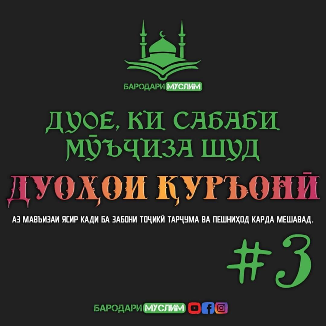 «Эй Парвардигори мо, бахшише аз наздики Худ ба мо бидеҳ ва дар кори мо роҳёбиро барои мо омода соз».