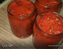Для того, чтобы приготовить такое незатейливое блюдо нам понадобиться: Помидоры и морковь пропускаем через мясорубку и доводим до кипения. Добавляем соль, сахар, уксус, масло подсолнечное и кипятим 2-3 минуты. Добавляем болгарский перец нарезанный дольками и варим на медленном огне 20 минут с момента закипания. Добавляем чеснок, пропущенный через чеснокодавку и кипятим еще 2 минуты. Горячим расфасовываем в стерилизованные банки и закрываем. Приятного аппетита!!! Не забывайте подписываться на канал. Ставьте лайки и пишите комментарии! До новых встреч!!!