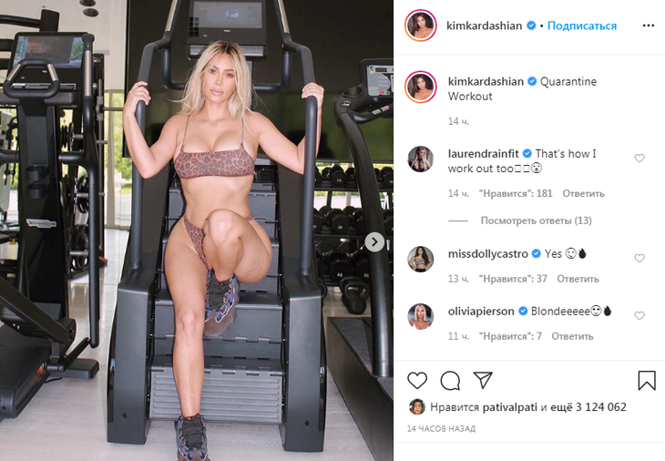 Ким Кардашьян рассказала, как она находится в форме во время карантина, в новой истории в Instagram, также демонстрируя некоторые из своих тренировочных снастей. Ким Кардашьян, 39 лет, делится секретами своих тренировок. 30 мая Ким в своих Storis показала своим 172 миллионов подписчиков, как она поддерживает свою стройную фигуру в форме. «Самая тяжелая тренировка в моей жизни сегодня, @fitgurlmel», - написала она поверх изображения, разговаривая со своим тренером Мелиссой Алькантару, которая также основала приложение Fitplan. «Начинала с 15 минут на беговой дорожке», объяснила Ким, отметив, что ее настройки были на «наклоне 14» и «скорости 2,5». Оттуда Ким сказала, что сделала «4 подхода с 20-фунтовым жилетом», демонстрируя черно-красный утяжеленный жилет от Adidas. Интенсивные тренировки также включали: «100 раз упражнения альпинист Бошу, 60 приседаний в прыжке TRX» и «10 взвешенных бурпе». Основательница KKW Beauty сфотографировала ноги - показывая пару Adidas YEezy Boost 350 муж