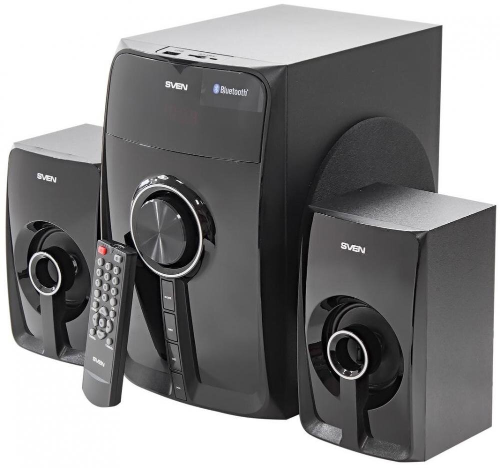 Внешний вид и конструкция Конструкцию SVEN MS-307 можно назвать классической, корпуса сабвуфера и сателлитов изготовлены из дерева – излюбленного материала меломанов. Дизайн акустики соответствует моде: сияющий черный глянец на лицевых панелях и нетривиальные декоративные элементы, напоминающие