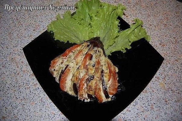 Ингредиенты: - баклажаны - помидоры - бекон - сыр Для заправки: - майонез - сметана - чеснок - зелень Приготовление: Баклажан разрезать вдоль на 2 части. Каждую половинку вдоль нарезаем на полоски, не дорезая до конца, присолить и оставить для 30 минут. Сыр нарезать на пластины, бекон на пластины, помидоры порезать полукольцами.Баклажан смыть от соли и промокнуть лишнюю воду. Выкладываем в форму, в которой будет запекаться. Между пластинами баклажана укладываем бекон, сыр, помидор. Перчим сверху и поливаем заправкой. Для заправки смешиваем майонез со сметаной 1:1 (можно и без майонеза, кто не любит), добавляем мелко порезанные чеснок и зелень, можно специи. Запекаем минут 30 при 180 градусах. Приятного аппетита! Больше рецептов в нашей группе Продвинутая Хозяйка Если рецепт Вам понравился, не забывайте ставить лайк и подписывайтесь, чтобы не пропустить новые публикации.