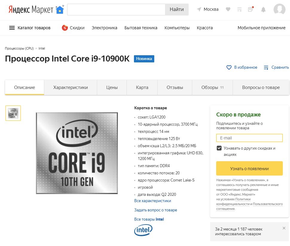 20 мая Intel объявила о выходе новых процессоров 10ХХХ поколения семейства Comet Lake. "Лояльные" издания успели протестировать новинки и объявили, что Intel Core i9-10900K является лучшим игровым процессором. Сейчас можно без проблем найти Core i3/ Core i5/ Core i7 на полках магазинов, а вот Core i9 в продаже до сих пор нет... На данный момент, по состоянию на 31 мая, купить любой процессор из семейства линейки Intel Core i9-10900, проблематично, даже невозможно. Отдельные экземпляры вроде бы появлялись в продаже, но потом сразу же исчезали- или их быстро купили, или же это было ошибкой магазинов. Ни в магазинах России, ни в Украине, ни даже на Amazon в наличии данных процессоров нет. Что интересно, Ryzen 9 3900X сейчас стоит дешевле, чем Intel Core i7-10700K, но для работы он быстрее, чем даже Intel Core i9-10900K, а в играх практически равен ему. Так что выходит, что у Intel сейчас серьезные проблемы как с ценообразованием на местах, так и с доступностью новых флагманских модел