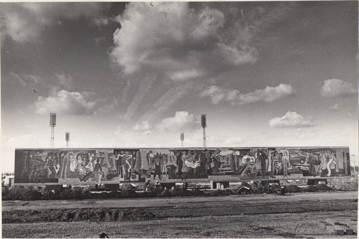 Объект создавался 4 года (с 1977 по 1981 г.) усилиями художника-монументалиста Юрия Константиновича при участии АВТОВАЗа. Для стелы понадобилось более трёх с половиной миллионов отдельных элементов смальты (около 100 оттенков), что делало проект очень дорогим. Все расходы проводились через бухгалтерию АВТОВАЗа, поэтому документы так и остались засекреченными. Вот так панно выглядело тогда на архивных фото.