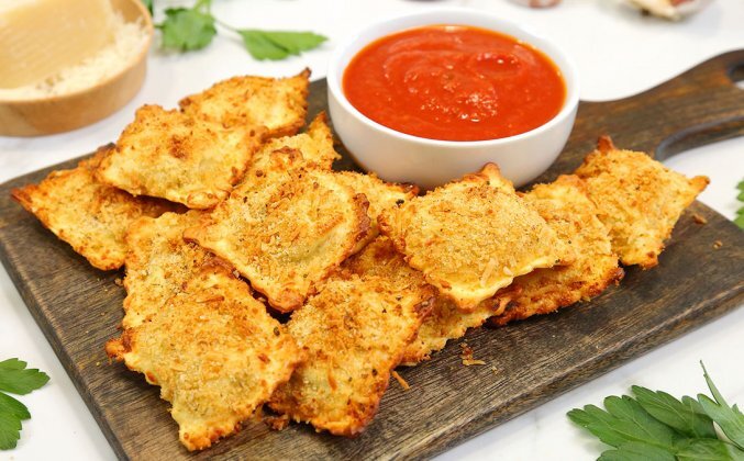 Рецепт Запеченные равиоли с сыром и шпинатом пошагово