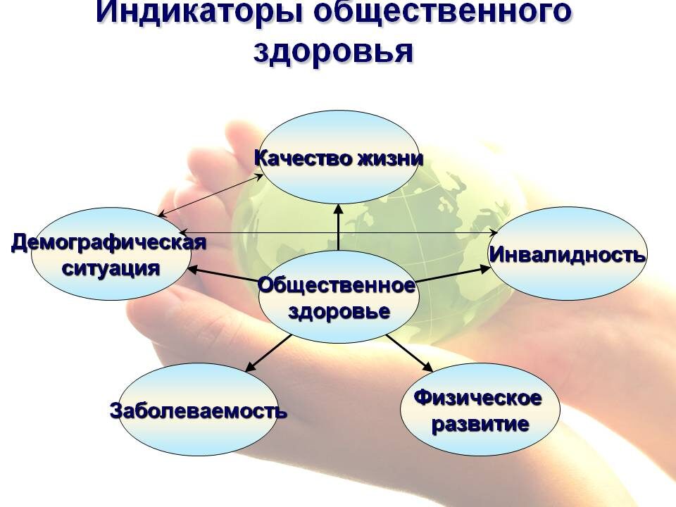 По мнению экспертов ВОЗ, в медицинской статистике под здоровьем на индивидуальном уровне подразумевается несуществование выявленных расстроенных свойств и заболеваний, а на популяционном ярусе - процесс понижения яруса степени смертности, заболеваемости и инвалидности, повышение ощущаемого уровня здоровья.