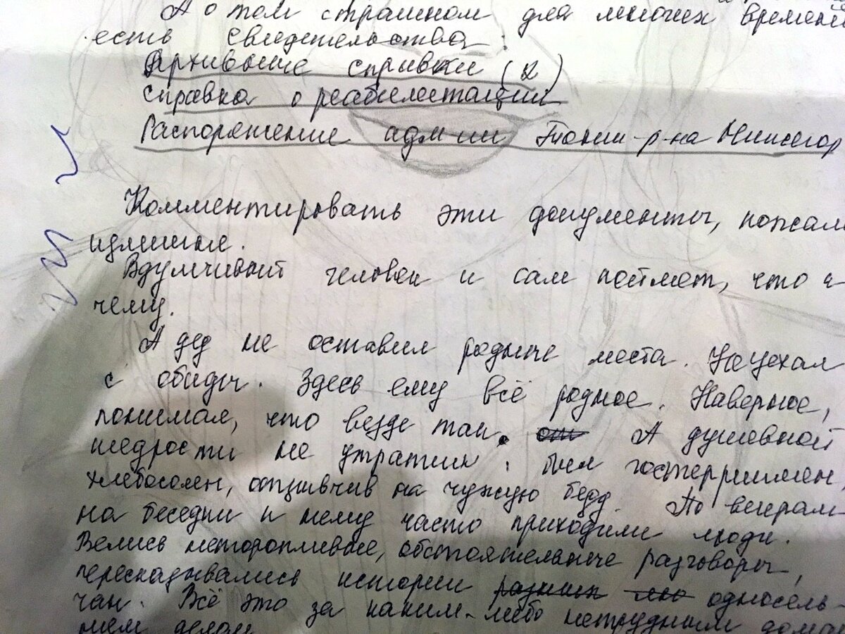 По фотографии видно, что не были напечатаны важные документы. Я среди ночи в состоянии рецидивного больного бросилась фотографировать рукопись, дрожащей от возмущения рукой подчеркнула как могла то, что не было напечатано, а было очень важно: