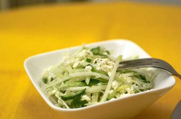 Свежие местные овощи – это настоящая находка для пациентов с сахарным диабетом. Вы можете готовить из них полезные салаты, чтобы улучшить общее самочувствие. Этот рецепт подойдет больным диабетом, которые хотят разнообразить свой рацион. Ингредиенты: · соль; · капуста кольраби – 300 граммов; · зелень укропа; · растительное масло; · огурец – 1 штука; · чеснок – 1 зубчик. Поэтапное приготовление блюда: · вымойте капусту, очистите ее и натрите на терке с крупными ячейками; · вымойте огурцы, нарежьте их тоненькой соломкой; · перемешайте овощи, добавьте пропущенный через пресс чеснок и измельченную зелень укропа; · посолите содержимое емкости на свой вкус, влейте масло. Подавайте салатик, состоящий из витаминных ингредиентов, на стол. Его можно смело употреблять в пищу, не переживая о том, что уровень сахара в крови увеличится. Приятного аппетита!