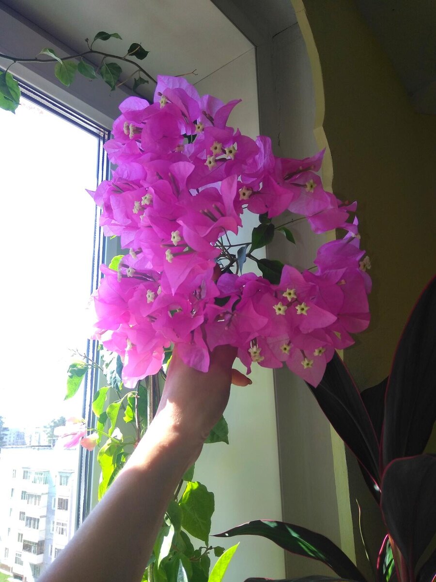 Свою бугенвиллию я приобрела пять лет назад, когда с мужем отдыхали в Тайланде. Там я накануне перед отъездом отломила по веточке с разных лиан.