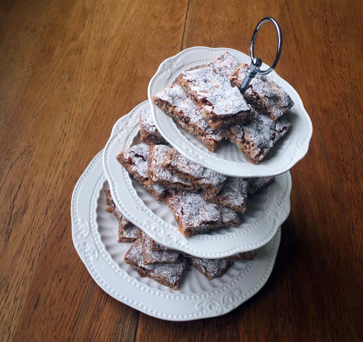 А уж потом, поверх сиропа, засыпать сахарной пудрой - тогда она лучше схватится с поверхностью и не будет пылить.