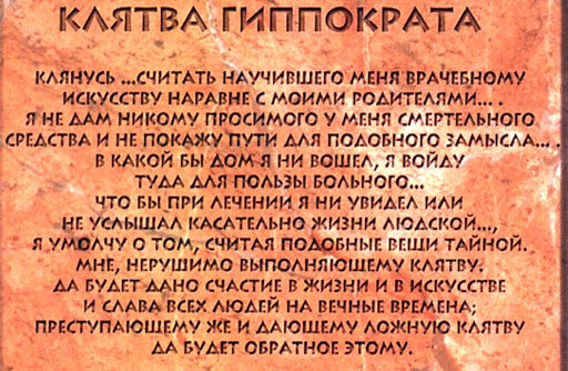 О хороших врачах у нас принято говорить: "Они верны клятве Гиппократа". Но истина в том, что медицинские работники уже, по крайней мере, лет двести, этой клятвы не дают. В России в Х1Х-ХХ веках лекари давали "Факультетское обещание". Врачи советского периода, к которым относится и ваш покорный слуга, - "Присягу врача Советского Союза", сильно смахивающую на "Пионерскую присягу", поскольку согласно ей мы до сих пор обязаны строить коммунизм и бороться за мир во всем мире. А если кто-то не желает быть и дальше "строителем" и "борцом", и хочет просто добросовестно лечить больных, значит ли это, что он – клятвопреступник?