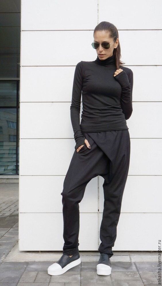 Разнообразят офисный наряд и сделают его уникальным. Выберете брюки из матовой ткани приглушенного цвета с небольшим запахом у талии, дополните образ рубашкой, заправленной в брюки и жакетом до середины бедра. Обувь в данном комплекте должна быть классической и строгой: подойдут туфли-лодочки, как с каблуком, так и без него, летом – босоножки с закрытым мыском и пяткой. Ещё больше интересных выкроек - у нас в телеграм канале (ссылка в Описании к каналу)