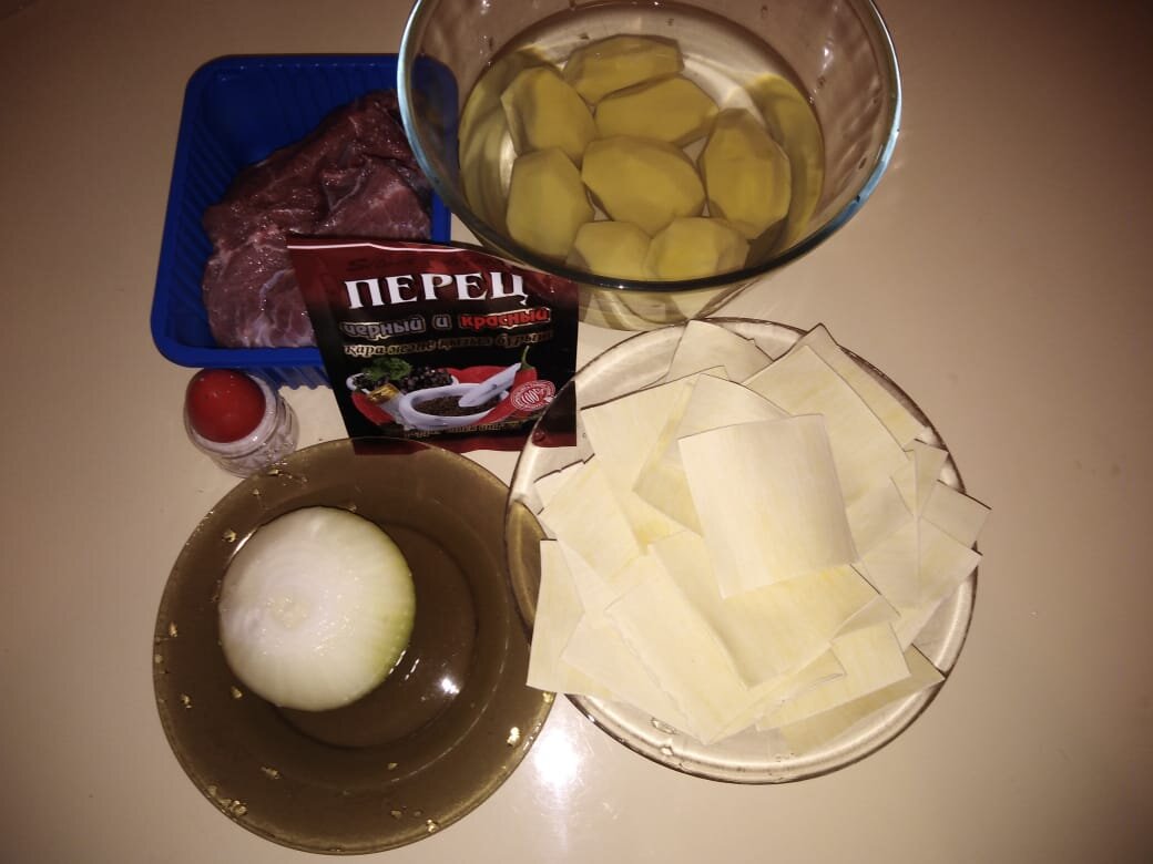 До встречи с мужем, с этим блюдом я знакома не была. Да и сейчас его готовит только он. Родился он в северном Казахстане, оттуда, собственно и рецепт, там его готовят достаточно часто. Список продуктов: Мясо нарезаем на средние кусочки Закидываем в казан мясо и одну луковицу целиком, солим. Варим 1,5-2 часа. Сварившееся мясо извлекаем из казана, луковицу оставляем в бульоне. В бульон опускаем картофель и варим его до готовности. После того, как картофель сварился, мы его вынимаем, вареную луковицу выкидываем и в этот же бульон опускаем сочни. Их нужно постоянно помешивать, чтобы они не слиплись. Перед тем как вынуть их из казана, разрезаем вторую луковицу четвертинками, достаточно крупно. Но кому не нравится крупный лук, можно измельчить по сильнее. Часть свежего лука кладем в тарелку, заливаем бульоном и перчим. Муж называет это - сурпа. В нее макают ингредиенты бешбармака, едят ложкой в прикуску, как суп. Вообще его подают в большом общем блюде, в порционном виде получается вот т