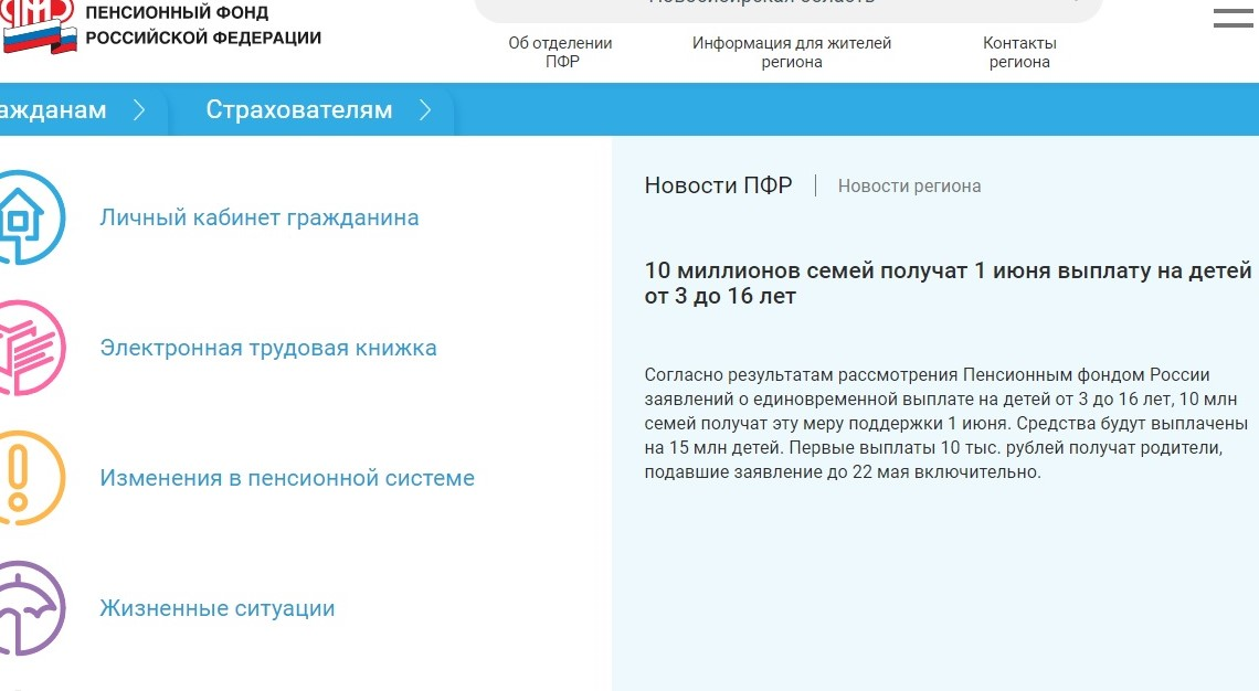 Опрометчивое заявление пресс-службы ПФР о том, что единовременную денежную выплату в 10000 руб получат все, кто подал заявление до 22 мая, оказалось громким. Начнем с того, что в условиях мировой пандемии люди оказались, если не за чертой бедности, то на ее пределе. Даже артисты стали говорить о приближающейся голодовке. Естественно финансовая поддержка от государства стала отличной помощью семьям с детьми. Да, конечно, не сразу вышестоящее руководство поняло, что дети от 7 до 16 это дети, кормить и одевать их так же необходимо. Да ладно вернемся к единовременной выплате в 10000 руб. У многих сложности возникли при подаче заявления. Сайт не работал, была большая перегрузка. Оказалось, что многие не получили СНИЛс на ребенка, без которого нельзя оформить выплату. Даже если СНИЛс есть, система наотрез отказывалась находить его номер. В итоге заявление подано и на днях прозвучало заявление, что деньги получат уже 1 июня все, кто подал заявление до 22 мая включительно. Хех, заявить мо